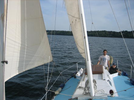 | We are off and sailing away ... | ... the block/pulley setup is working great now. |