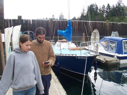 | We had a great day of sailing ... | ... back in the marina and Doug checks out the GPS. |