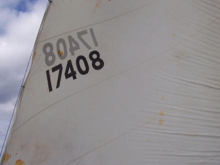 | We decide to try out the other Genoa sail ... | A few spots ... but, not too bad. |