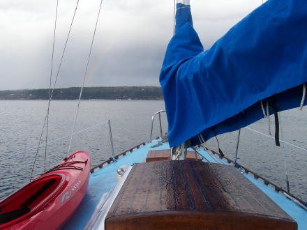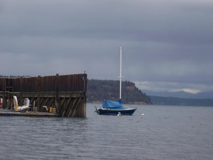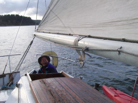 We had a great sailing day with Mike Cervino. We go down in the boatmobile, find the boat is doing great on the buoy, get things all setup and then motor out a bit. From there, Bruce got up the mainsail and we took off over to Camano island.