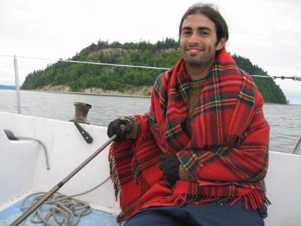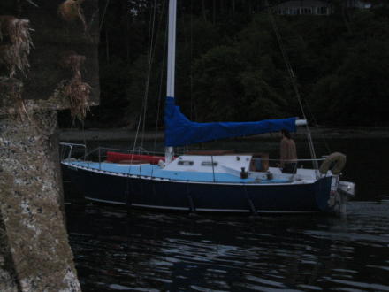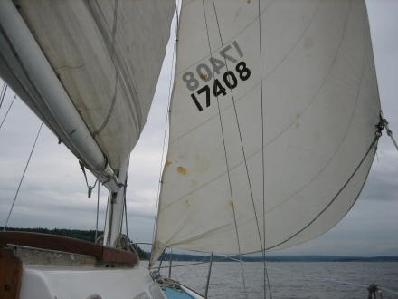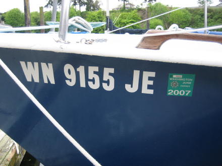 | Before leaving we get on the "2007" sticker ... | ... Bruce gets up the mainsail and genoa ... and we are off to Camano! |