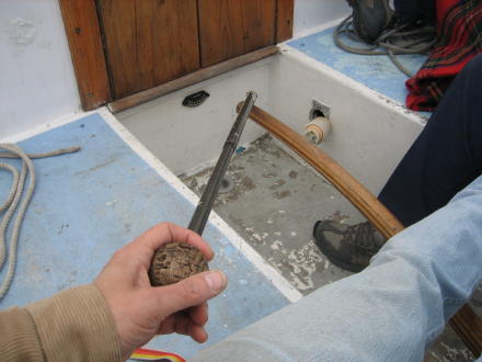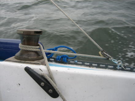 | We test out the blocks behind the winch ... | ... and the "Lev-O-Gage ... we're at 11 degrees! |