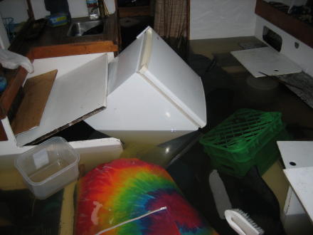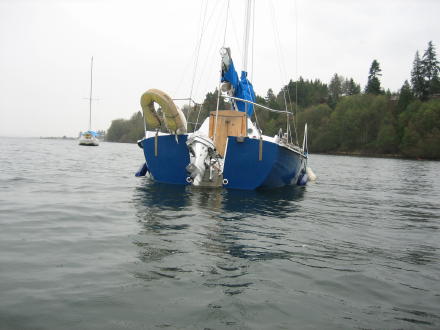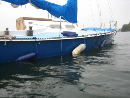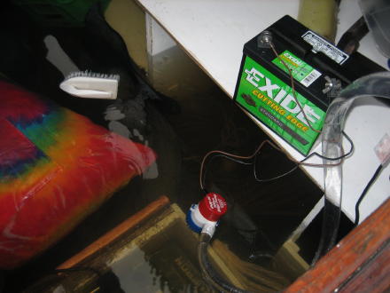 | Notice how you can't see the white line on the hull! It has taken on a little bit of water! Bruce sets up the bilge pump and baby sits the boat for 3 days (until Doug comes up for Thanksgiving). | |