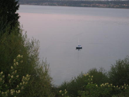 Doug and Michele come down with their stuff ... the boat is anchored right below the house.