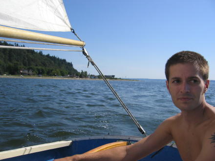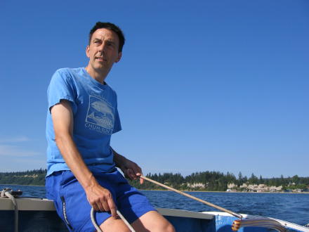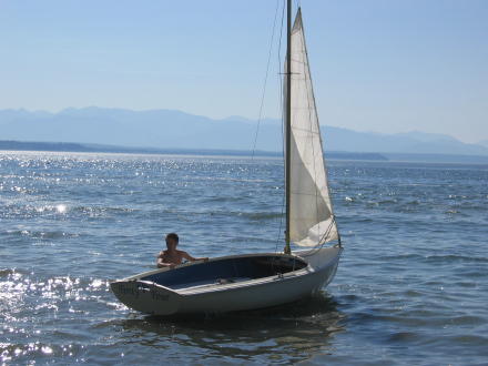 This is first time we launched off of Maxwelton Beach (on the west side of Whidbey island). Before leaving we made a few repairs to the boat. Plus, we tested out the tiller extender. |
