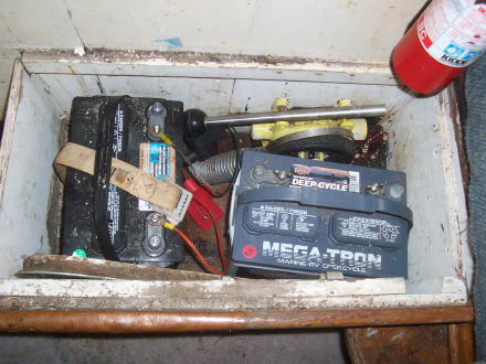 The batteries are under the steps.