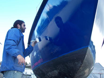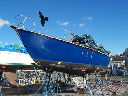 We had a great day painting the boat ... it's really starting to look good! Even a crow enjoyed the boat.