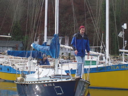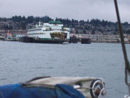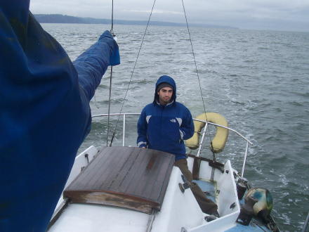 Doug at the helm ... dodging the various ferries was interesting (especially in Edmonds). We got the boat parked in the marina in Langley ... it was a successful trip! |