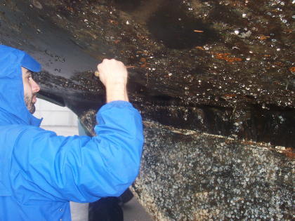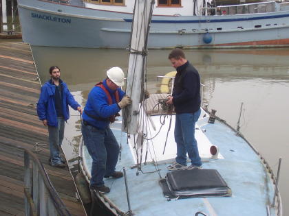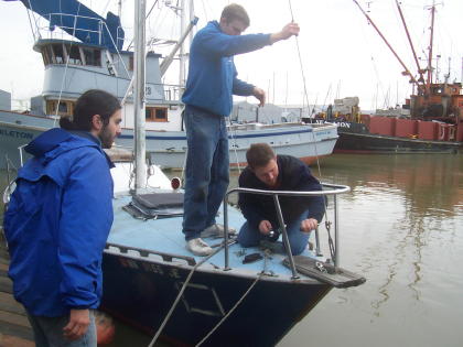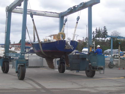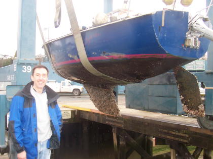 We had quite the sail over to Everett ... 22 MPH winds and 5 foot waves. We made it there, got the mast off, and the boat out of the water. The pressure washing and barnacle scraping was a great success, but we found we have some more work to do on the mast. We even found two starfish on the bottom of the boat! |