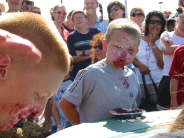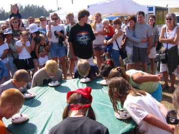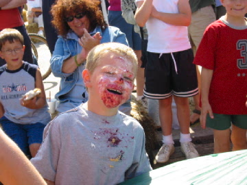 | Speaking of pies ... here's the start of the Pie Eating Contest. | There's plenty of tough competition! |