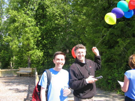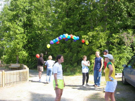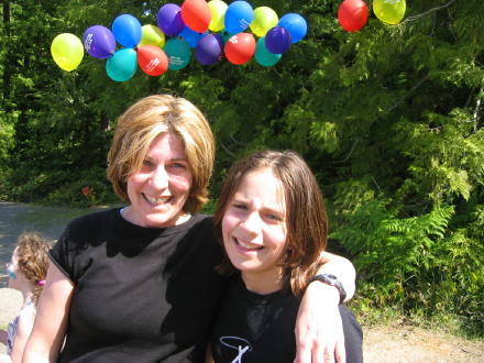 Here's Patsy and Katelyn at the finish line. And, Bruce with the official time keeper.