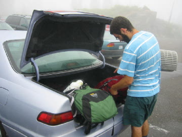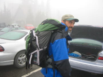 | We're getting ready to start (in the clouds). | The packs aren't too heavy! |