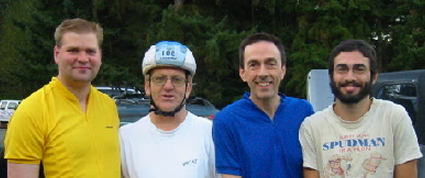 | The race is just about ready to start. | Here is our group (Alan, Chris, Bruce, and Doug). Barbara (the photographer) drove us up. |