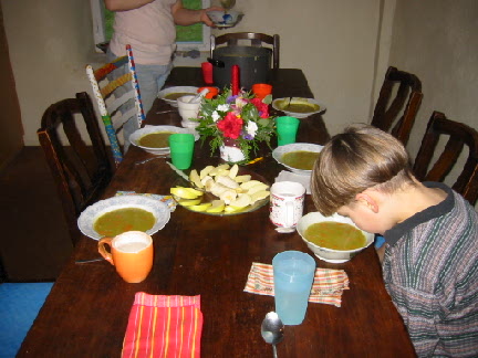 At the Burnett's for lunch (Ben is really checking out that split pea soup).