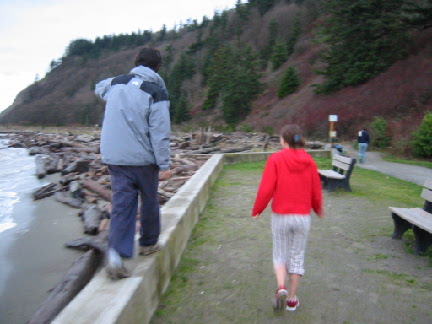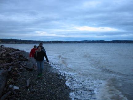 | We are heading out to Double Bluff beach. | I'ts a bit of a hike (given the high tide). |