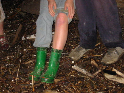 Nora had a little accident off the swing (but those frog boots are cool). |